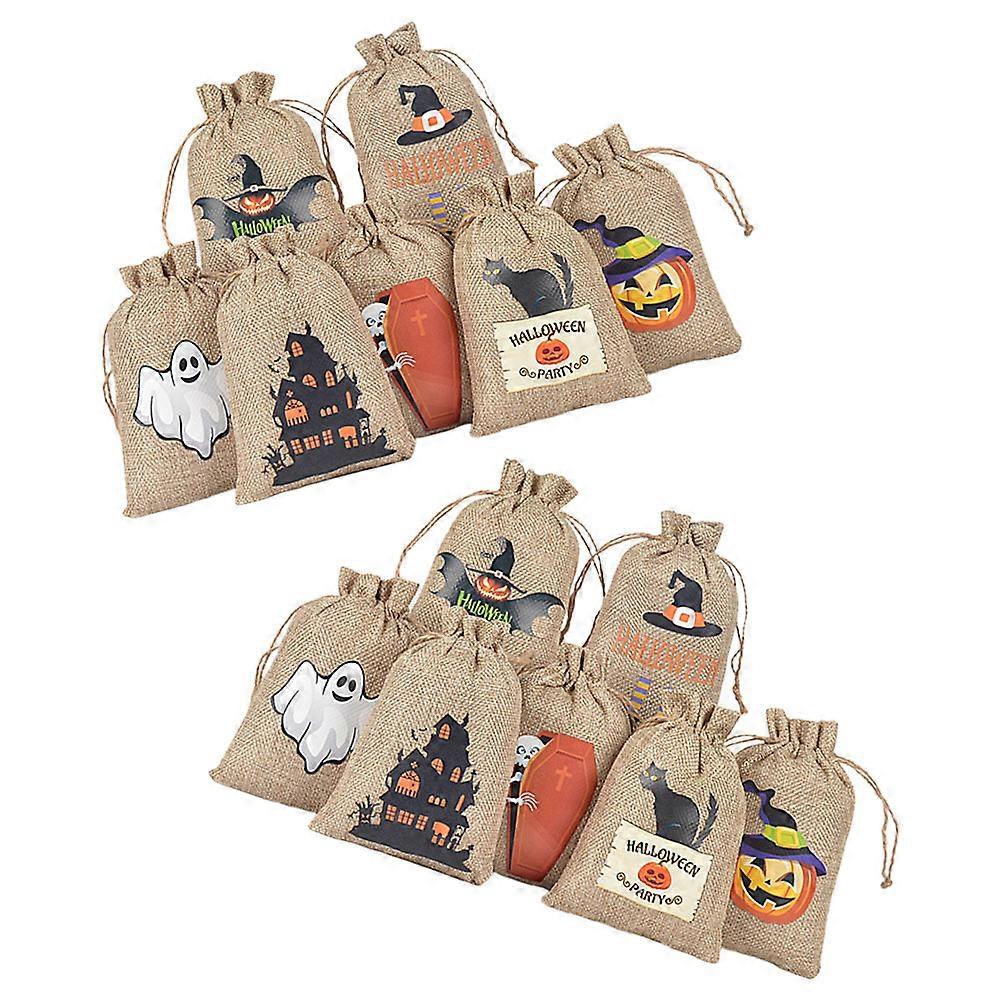 24pcs Halloween Drawstring Linen Bags Festival Print Lightweight Reusable Gift Pouches for Candy Snacks Party Favors Storage