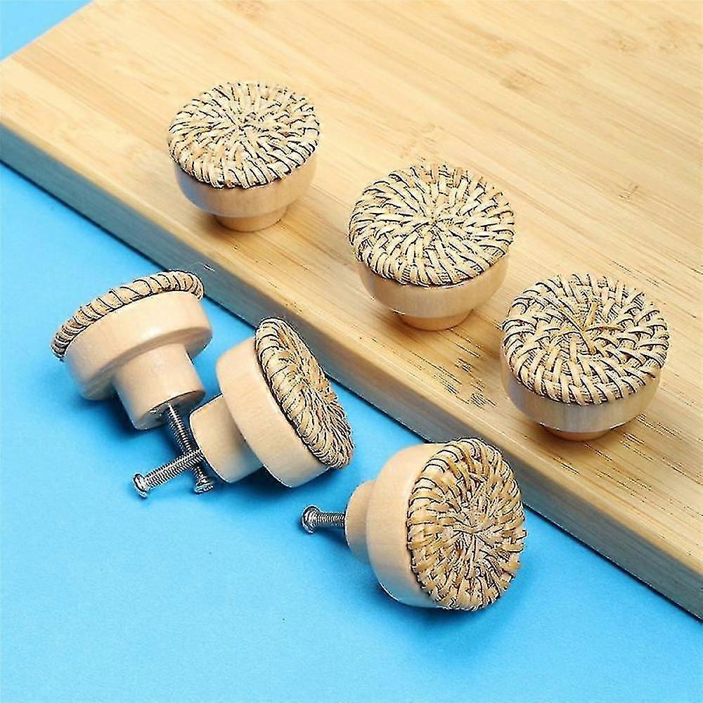 24pcs Boho Rattan Dresser Knobs Round Wooden Drawer Knobs Cabinets Dresser Handles Hardware Pulls C