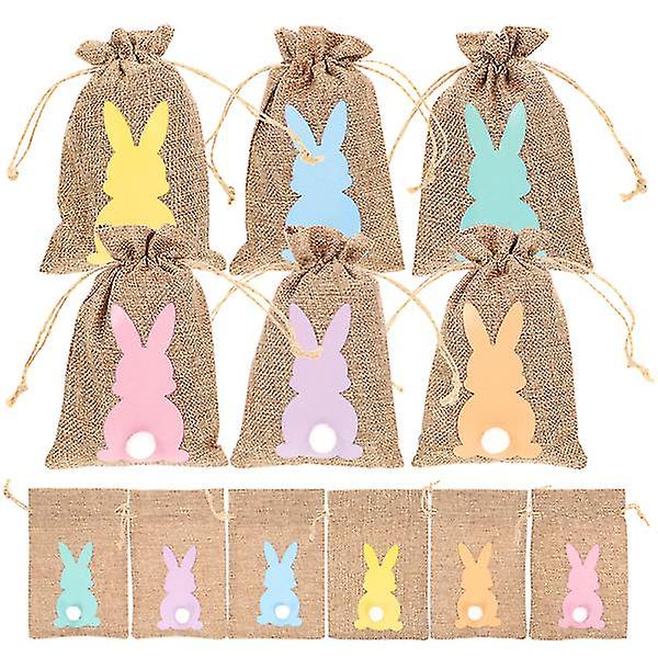 24pcs Easter Burlap Drawstring Bags Easter Bunny Bags Gift Packing Bags Mixed Color