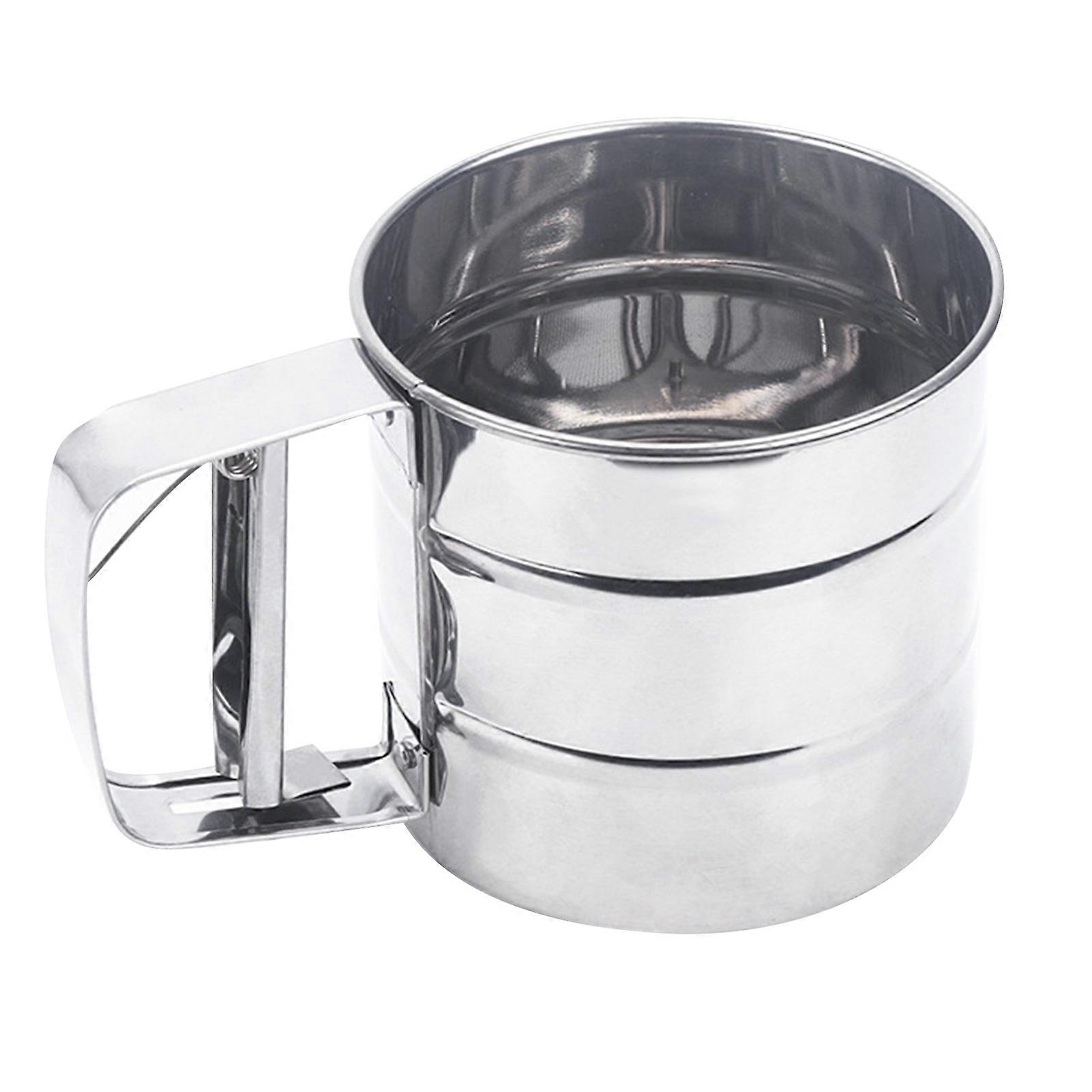 24 Mesh Stainless Steel Flour Sifter Cup with Handle, Fine Mesh Hand Press Sifter for Flour Cocoa Powder Baking and Cooking Tools