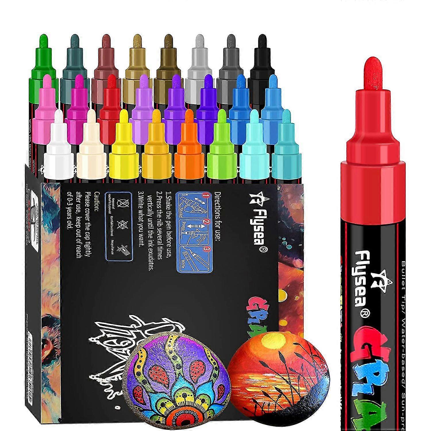 24 Colors Acrylic Paint Marker Pens, Extra Fine Point Acrylic For Wood, Canvas, Rock Painting, Glass