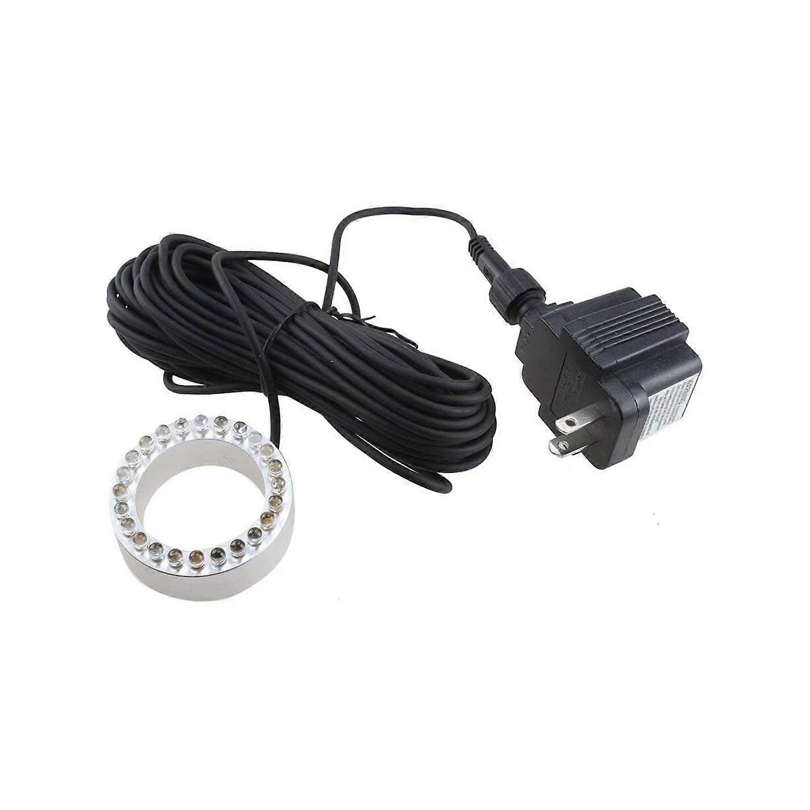 DescriptionDescription Description This bright ring light is submersible. Diameter of lamp housing: approx. 60mmInside ring opening width: 42mmCord length: approx. 16.5 feet.Includes 6 watt/12 volt transformer.Color: Slow-changed
