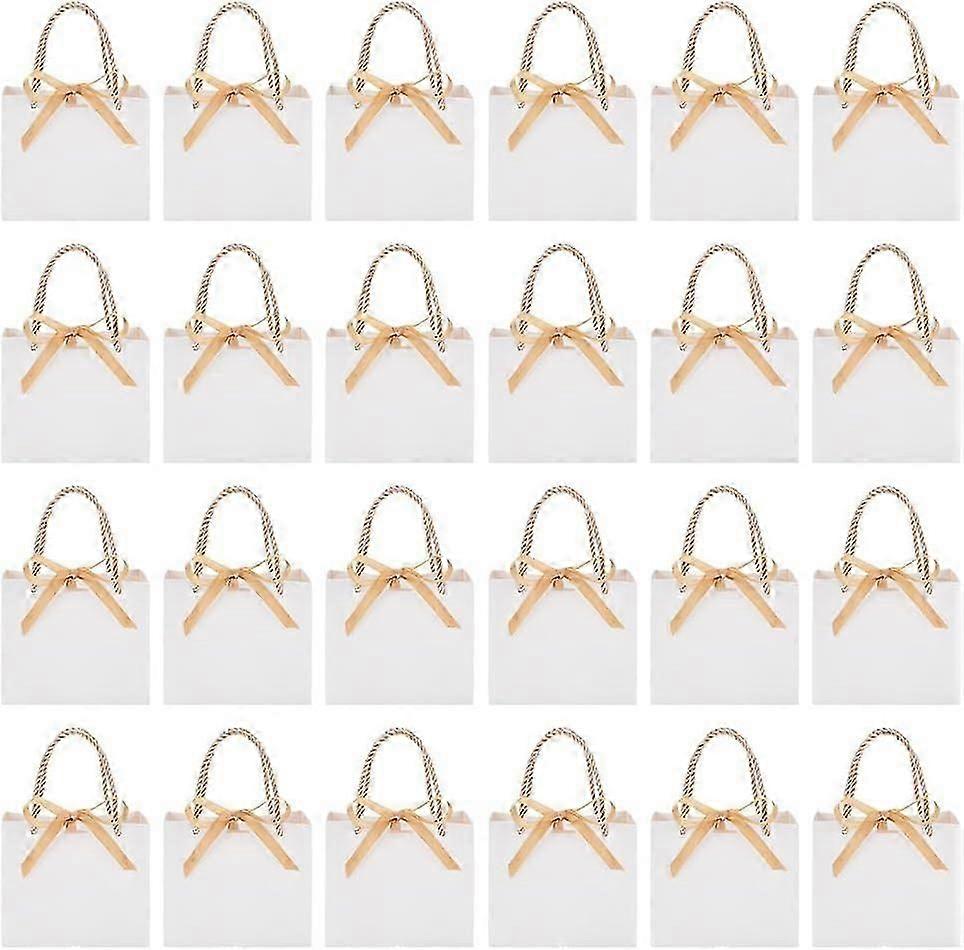 24 Sets White Gift Paper Bags Party Favor Bags with Handle and Bow Ribbon 4.7x5.5x2.4inch Portable Kraft Paper Gift Bag Candy Bags for Birthday Weddin