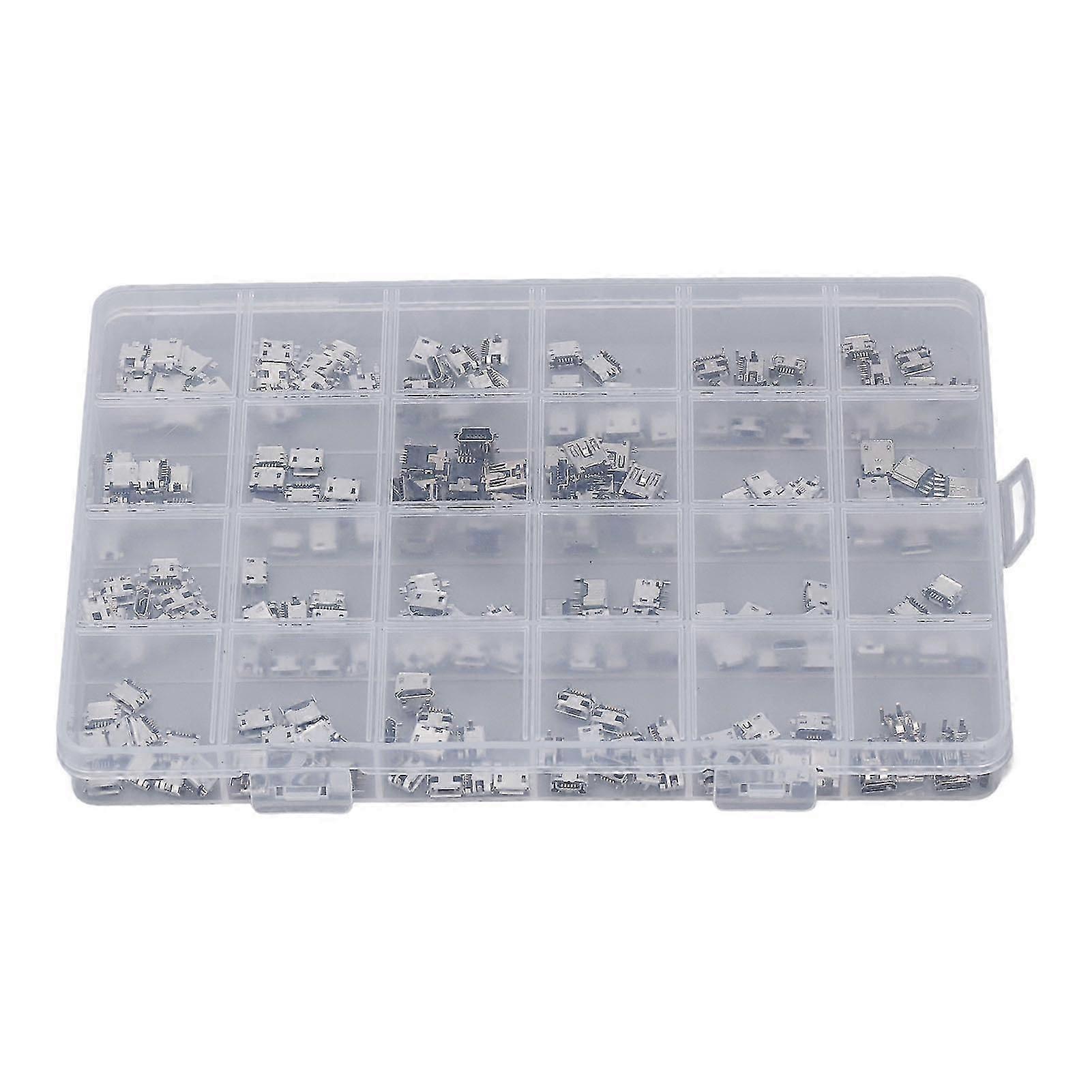 240 Pcs Micro USB Connector Set Stainless Steel Single Row USB Female Port Socket Connectors