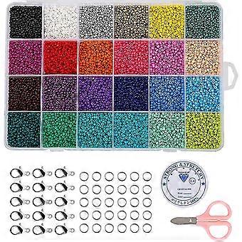 24 Vibrant Colors: green, blue, red, yellow, black, white, and more; About 1000 pieces each color; enough and vibrant to meet your various needs of DIY jewelry making or craft creations. Package includes 24000pcs of 24 different colors pony glass seed beads, 20pcs lobster clasps and 100pcs open jump rings in a plastic box for bracelet, necklace and jewelry making. Beads Size: 2mm (approx.0.08") in diameter, hole: 0.5mm (approx.0.02"). Material: made of glass. PLEASE DOUBLE CHECK the size of these beads. Cconvenient to carry and store: The glass beads which are sorted out by each color are stored in a high-quality organizer storage container. Convenient for you to collect, carry and store anywhere ntainer. Convenient for you to collect, carry and store anywhere Wide application: Great kit for DIY bracelet, earrings, necklace, embroidering, sewing, dress decoration, jewelry accessories, gifts, clothes and other crafts.