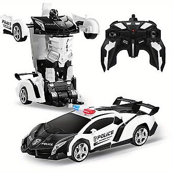 24ghz Long Distance Remote Control 1:18 Scale Transform Rc Car Robot For Kids One Button Deformation Police Toy Car With 360 Degree Drifting Great