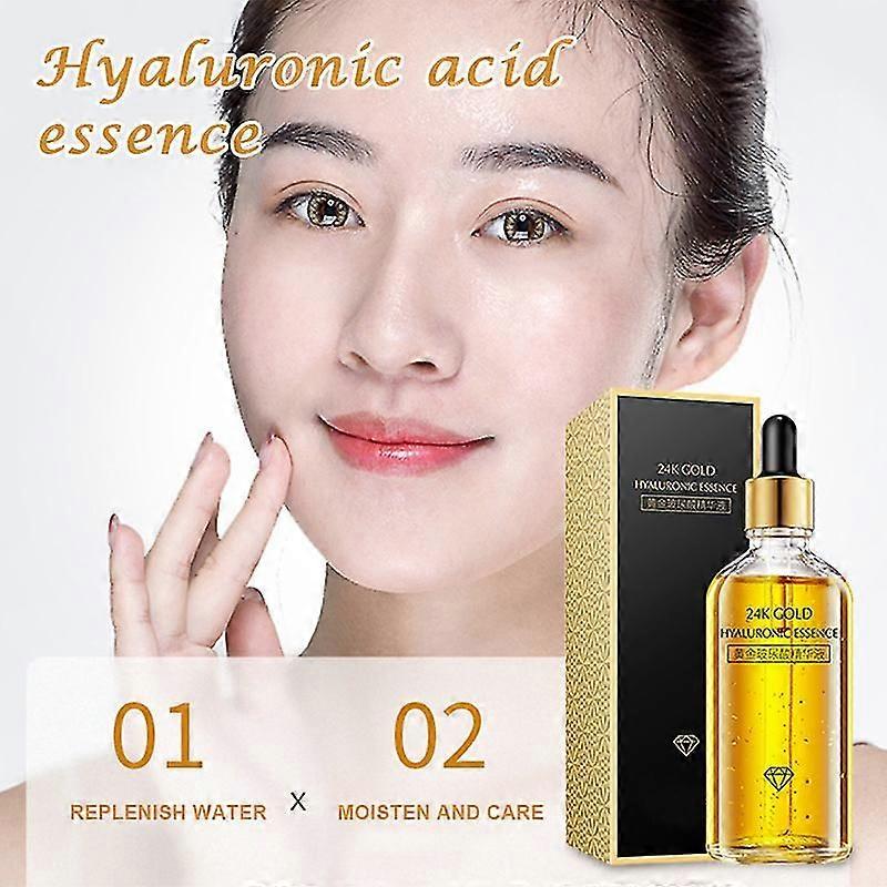 24k Gold Hyaluronic Acid Essence Moisturizing Replenishment Brightens Pores Firming Skin Care