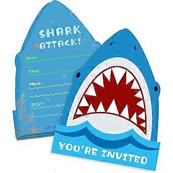 25 Pack Shark Birthday Party Invitations with Envelopes-Double Sided -Shaped Fill-In Invitations-Shark party supplies