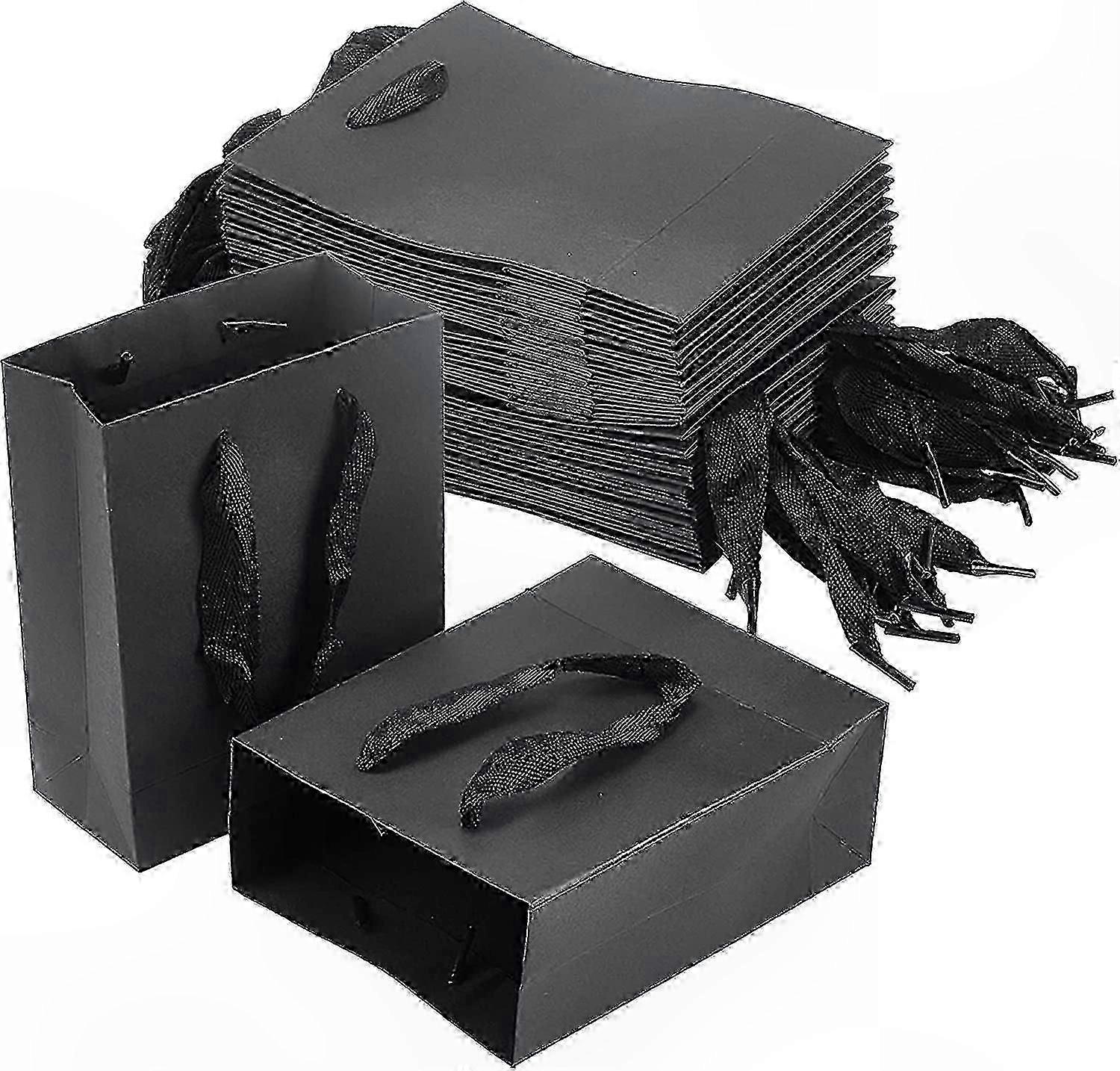 25 Pack Rectangular Paper Bags with Handles, Black, 16x13x6cm, Ideal for Gifts, Parties, and Special Occasions