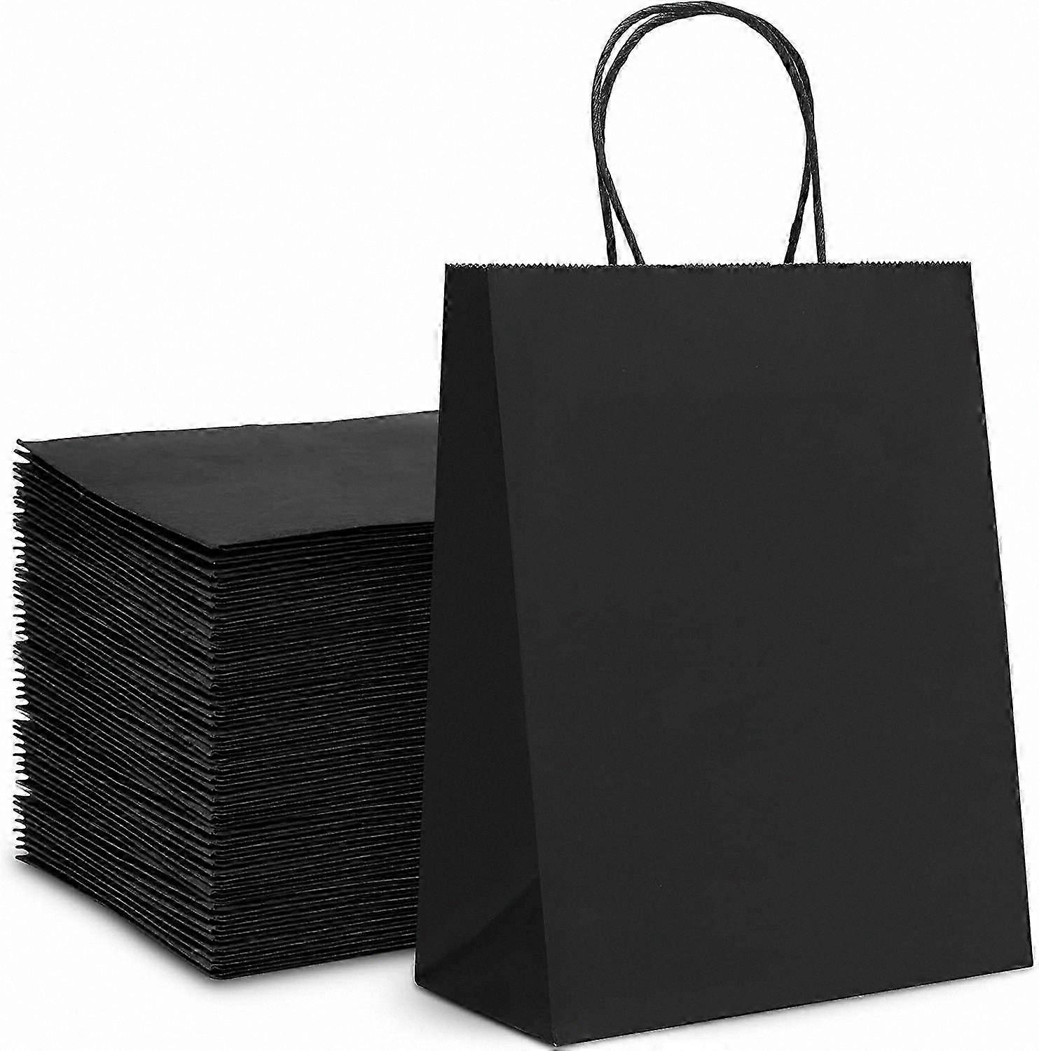 25 Pack Kraft Paper Bags with Reinforced Handles, Black, 27x21x11cm, Durable and Eco-Friendly Carrier Bags