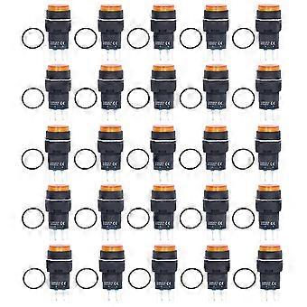 25Pcs Button Switch Momentary Self Locking 8 Pin 16mm Round with Light 12V for ControlYellow