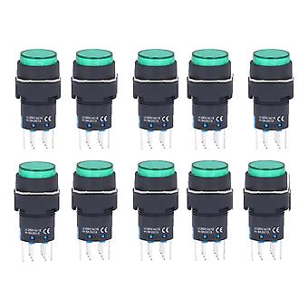 25Pcs Momentary Push Button Switch Self Locking 8 Pin Round with Light 24V BEMLA1622DSY 16mm(Green )