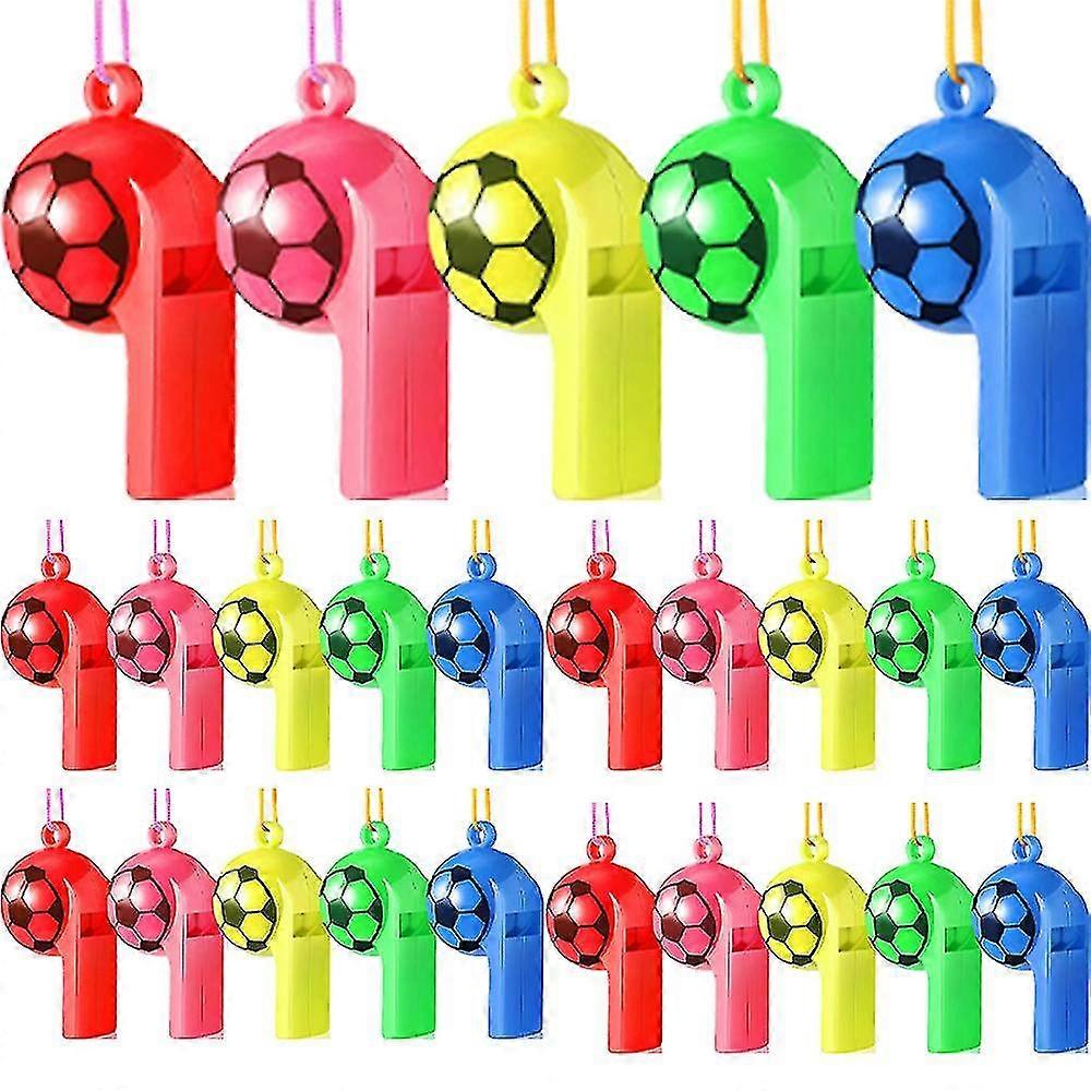 25 Pcs Plastic Whistles With Lanyard, Soccer Pattern Training Sports Whistle Set For Kids