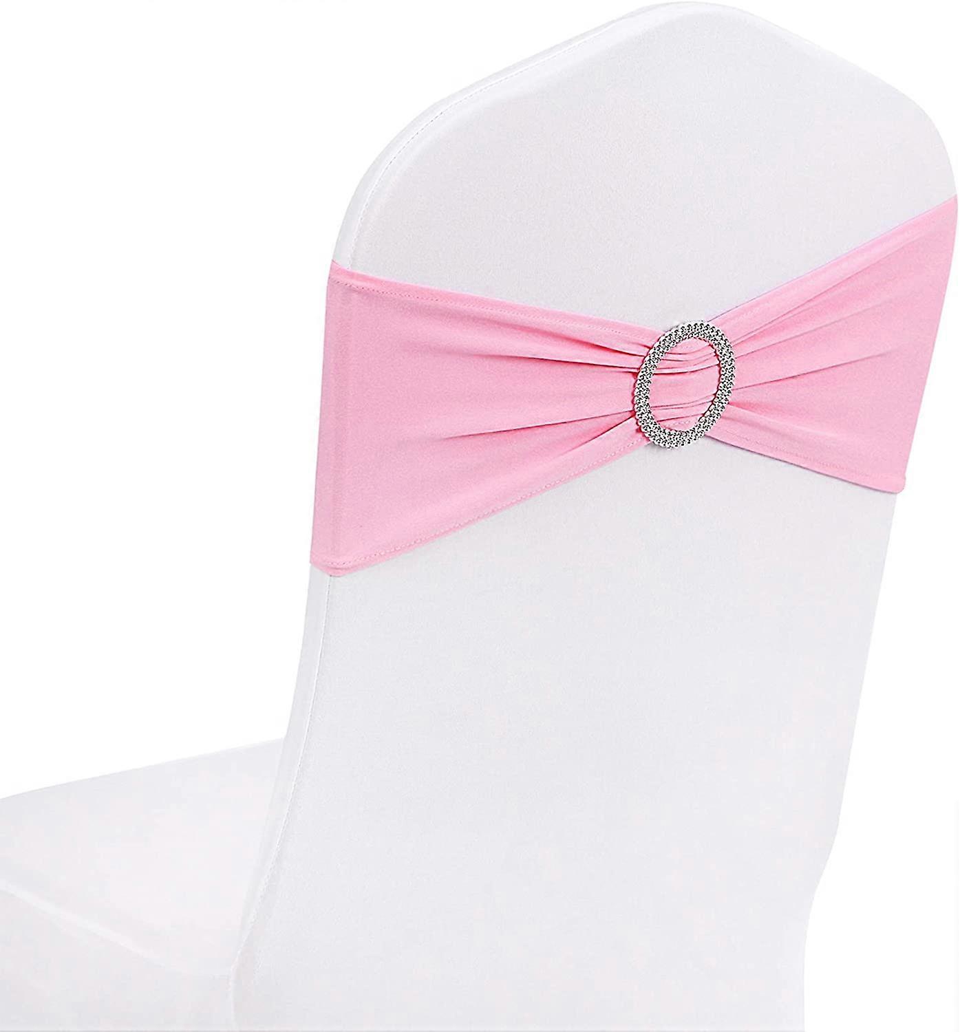 25pcs Pink Spandex Chair Sashes with Buckle Slider for Wedding, Party Decoration