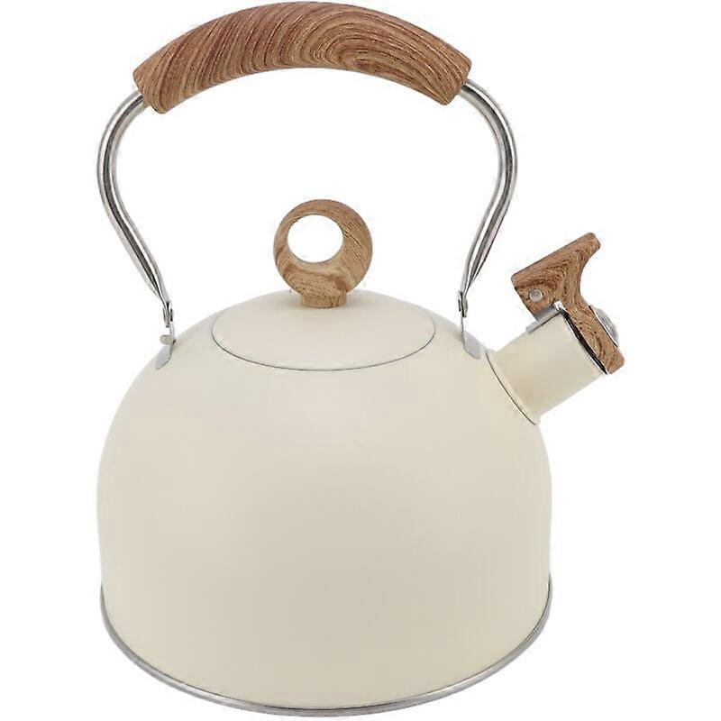 2.5 Liter Whistling Tea Kettle, Stainless Steel Teapot with Handle for Electric Gas Stove Beige