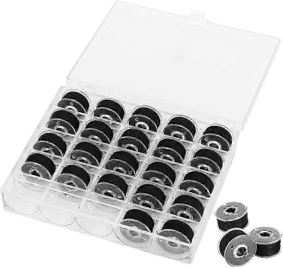 25Pcs Pre-Wound Bobbin Threads Set for Sewing Machines, Black Bobbin Thread for Embroidery Uses