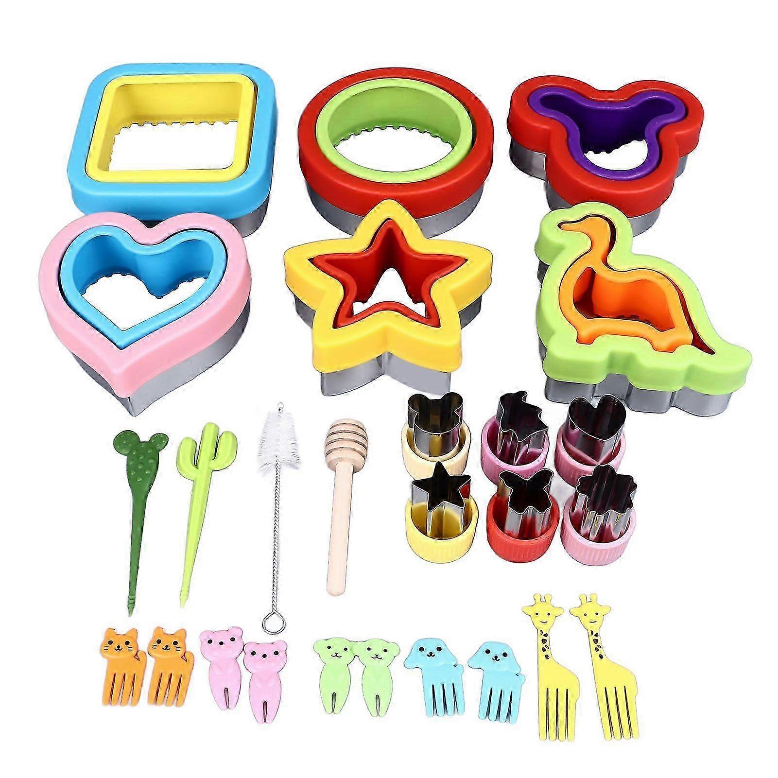 26PCS Sandwich Cutter and Sealer Set Stainless Steel Bread Cookie Vegetable Fruit Cutters Shapes Molds with Forks Stirring Stick Brush for DIY Baking