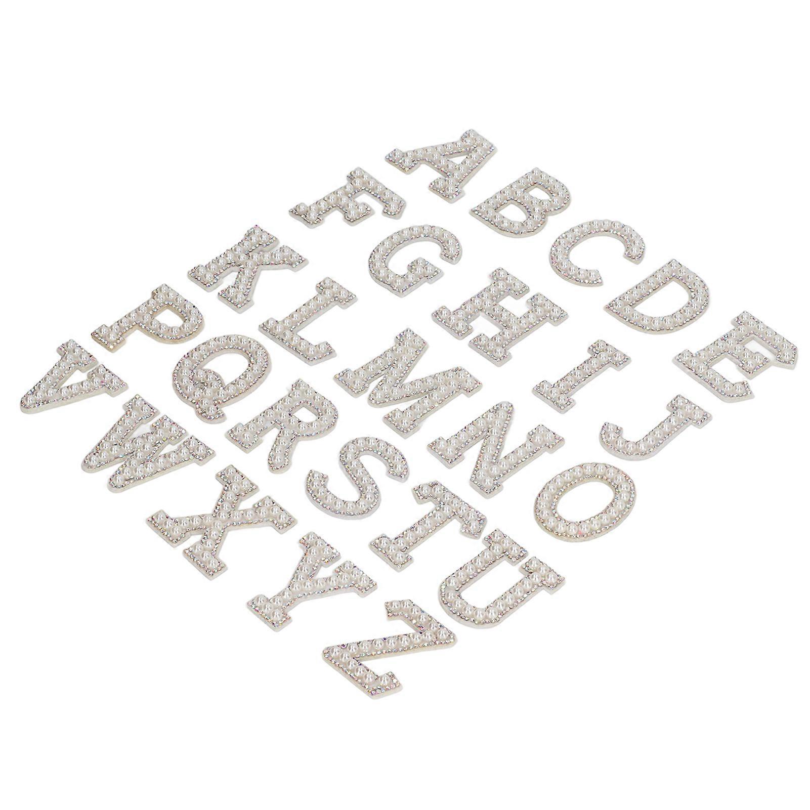 26Pcs English Letters Patches Faux Pearl Style Bright Widely Used Easy Operation Iron On Patches for Bags Clothes DIY