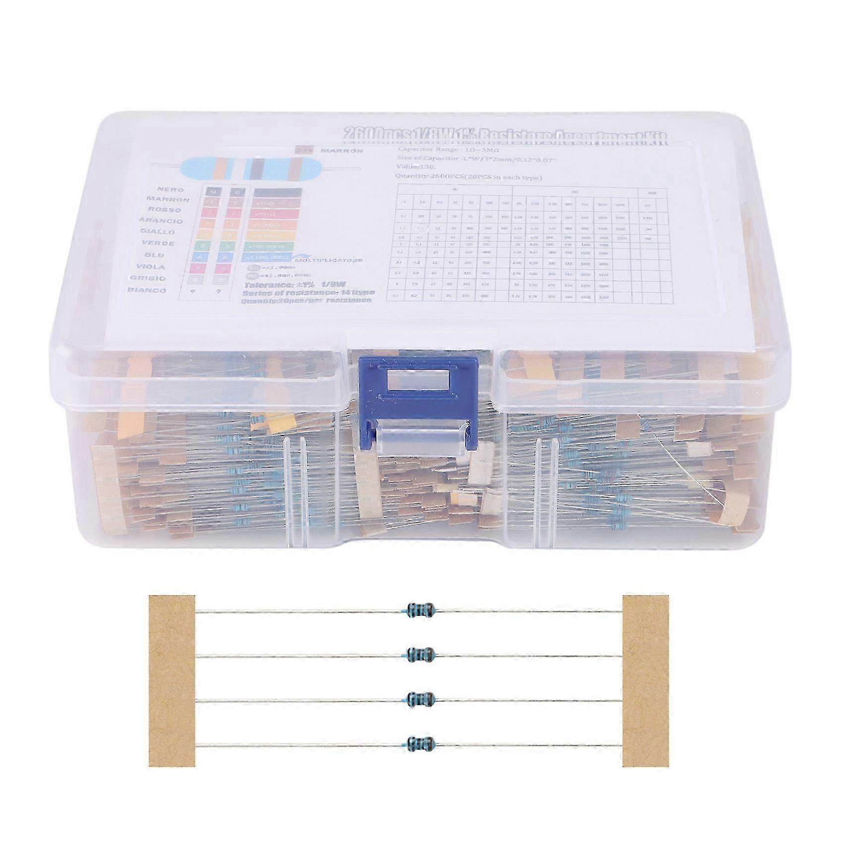 2600pcs 130 Values 1/8w 0.125w 1% Metal Film Resistors Assorted Pack Set Resistors Assortment Kits Fixed Capacitors