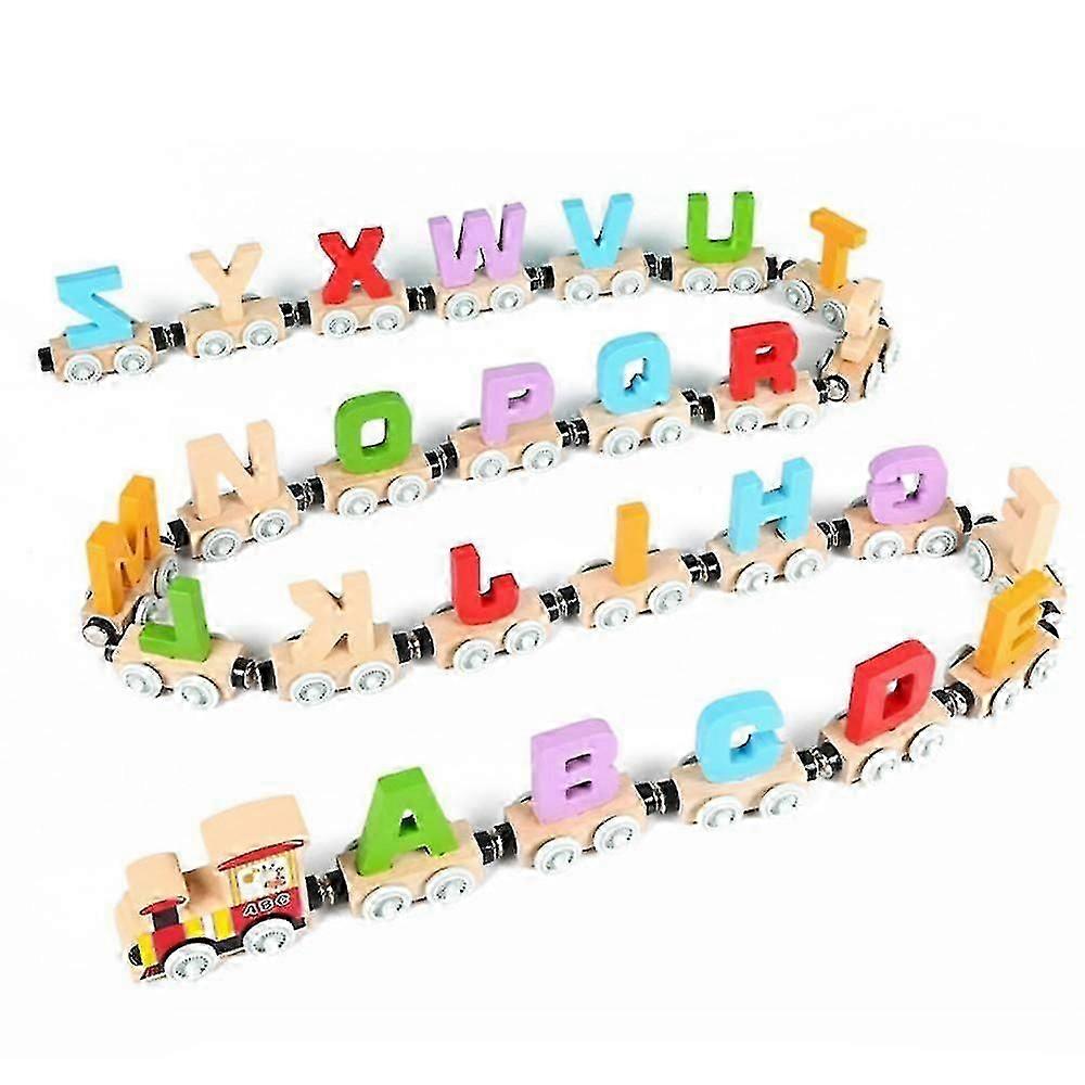 27 Pcs Wooden Alphabet Train Toy Wooden Magnetic Alphabet Abc Train Set Includes 1 Engine Letter Cars For Toddlers Boys And Girls, Compatible With Maj