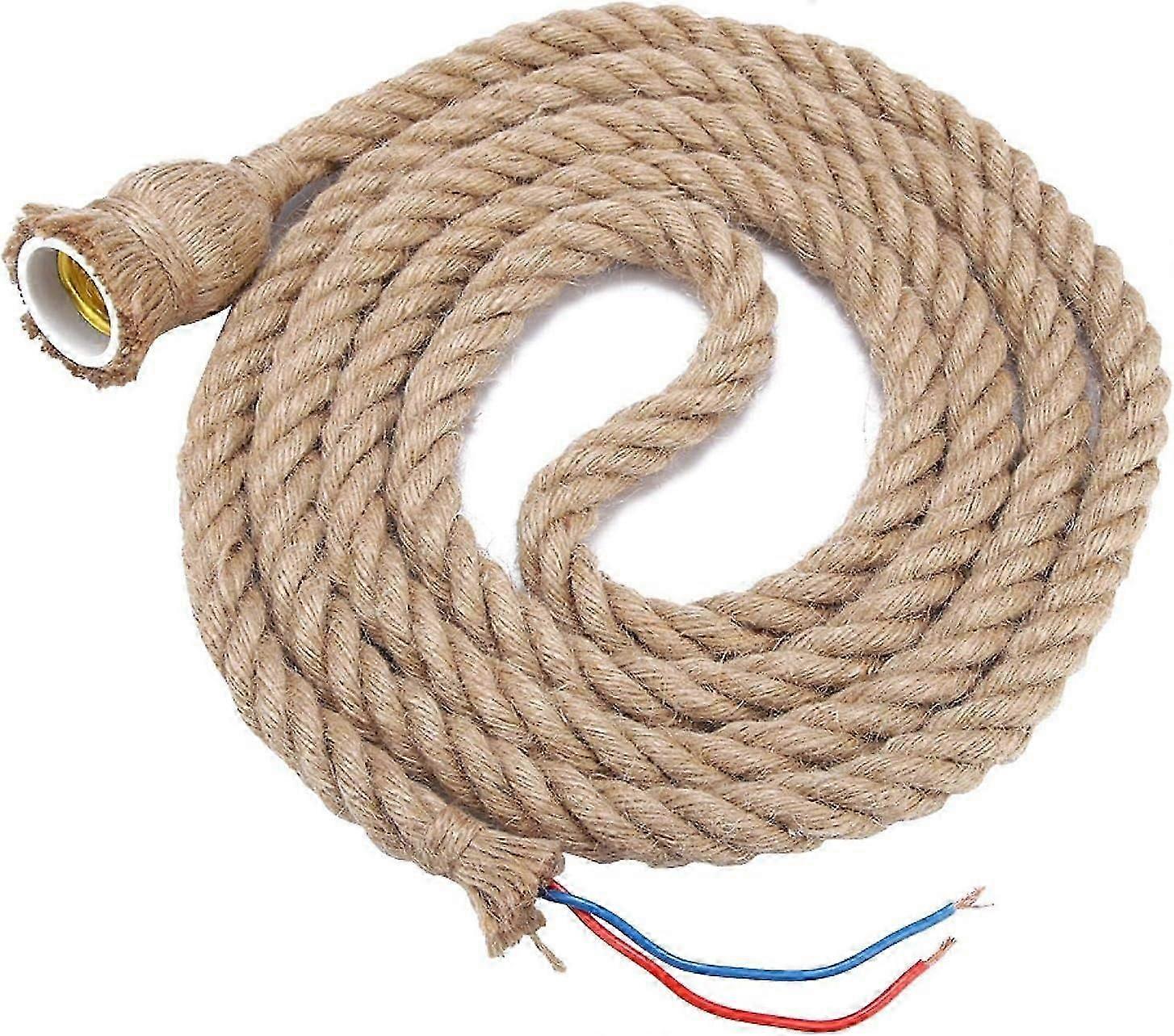 2m E27 Retro Hanging Hemp Rope, Ceiling Down Pendant Cable Hanging Restaurant Bar Home Decor 85-265V (2m 1 head)