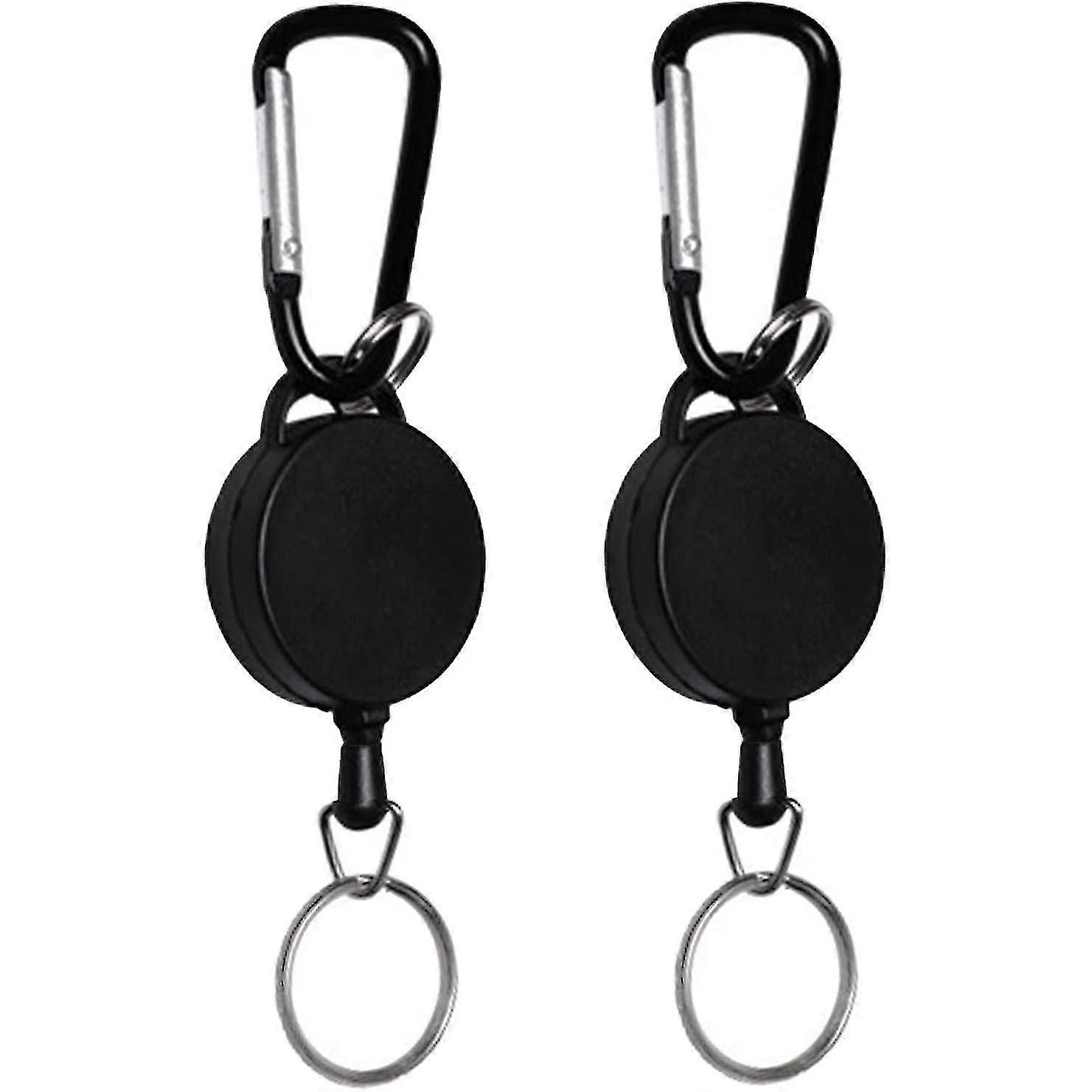 2pc Heavy-duty Retractable Keychains Retractable Badges Reel Clip With 65cm/ 25 Inches Steel Wire Rope, Black (d-4-d)