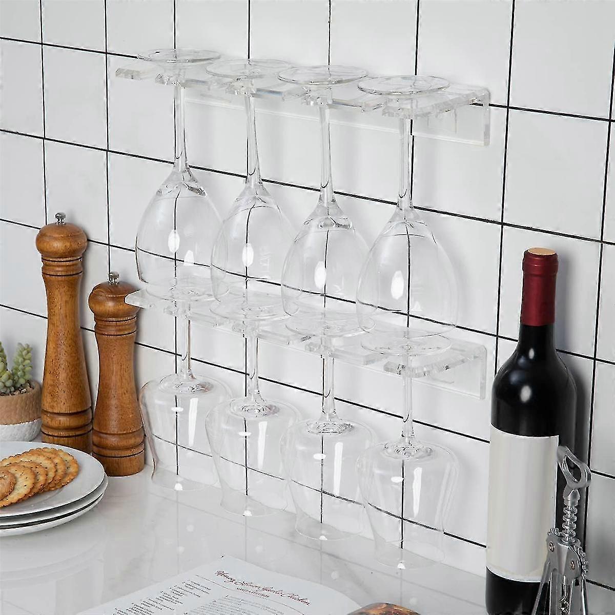 2PCS Acrylic Wine Glass Holder Wall Mounted Cup Holder Wine Glass Hanging Rack Kitchen Cupboard Bar