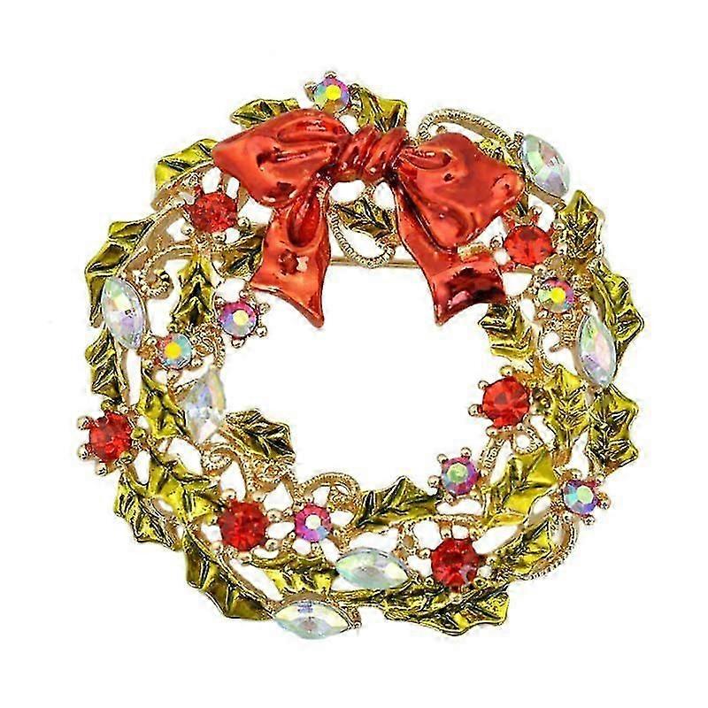 2pcs Ladies Christmas Brooch Shiny Vintage Gold Christmas Wreath Brooch Cute Christmas