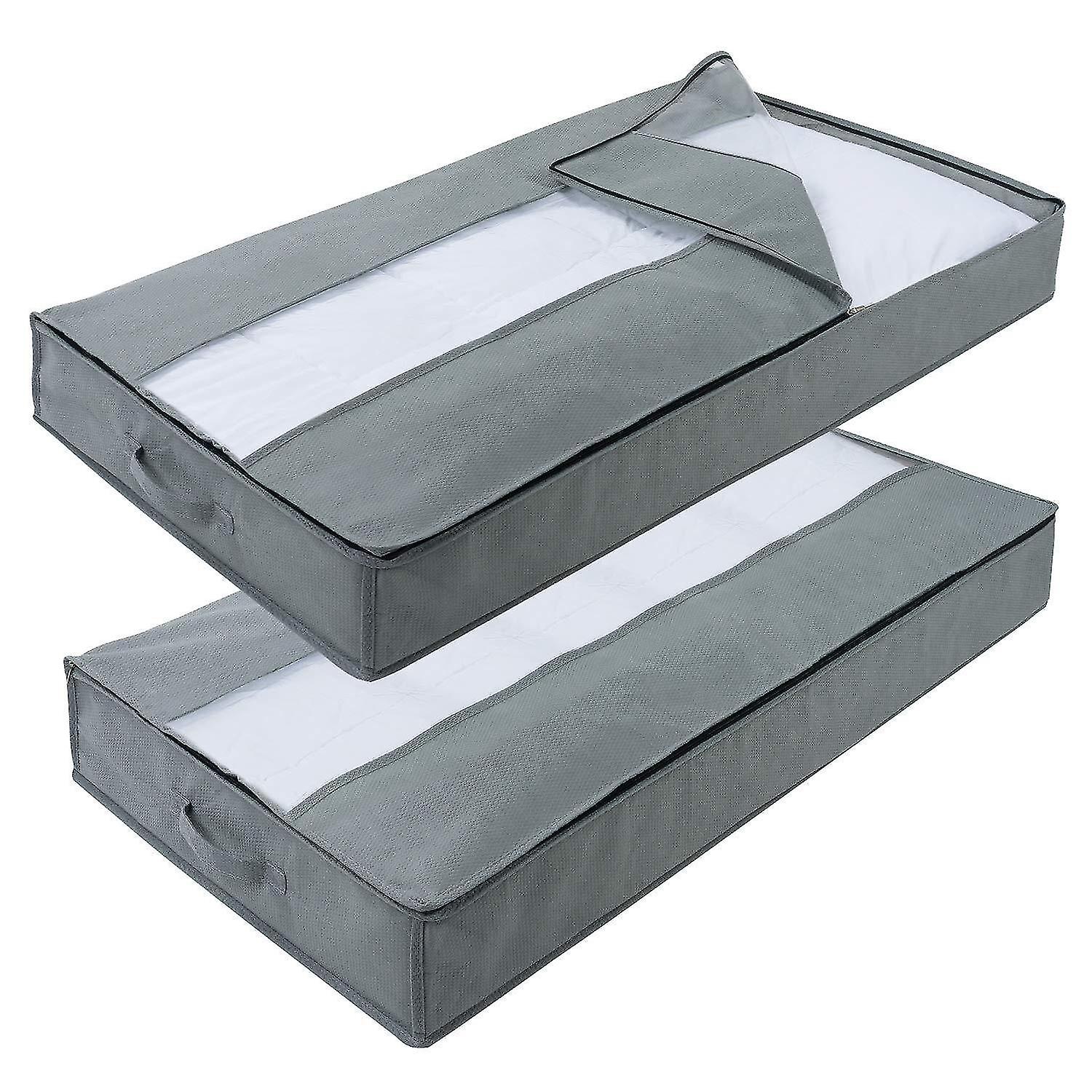 2pcs Under Bed Storage Bag With Zips Foldable Thick Breathable Underbed Clothes Storage Bags