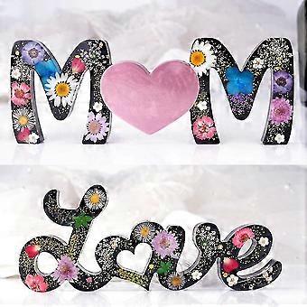 2PCS دي الايبوكسي العفن رسائل عيد الأم "الحب"، "أمي" سيليكون العفن