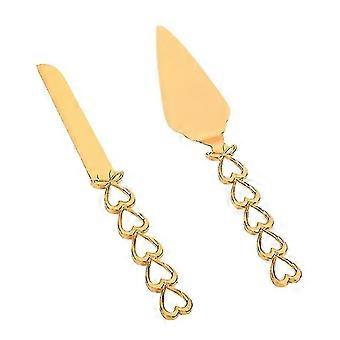 2pcs Heart Shape Handle Cake Cutter Golden Cake Shovel Knife Wedding Cake Knife Server Set Party Ba