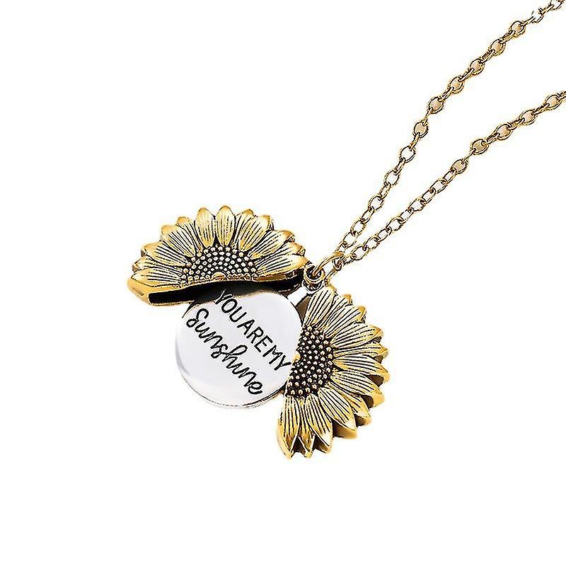 2pcs Sunflower Locket Necklace Love Mom Engraved Pendant Necklace For Women Girls With Nice Gift Box