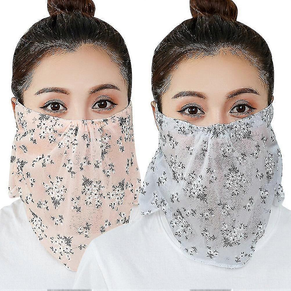 2pcs Floral Pattern Breathable Scarf Mouth Mask Summer Sunscreen Face Cover Shading Face Mask Neck Protector For Hiking Riding (grey, Pink)