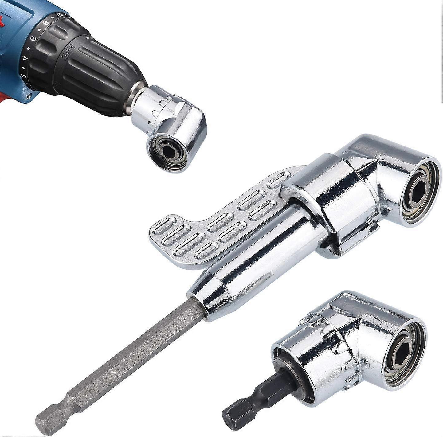 2Pcs 105 1/4 Inch Right Angle Drill Adapter with Hex Shank Screwdriver Angled Drill Extension Bit Holder for Power Drill Tool, Right Angle Screwdriver