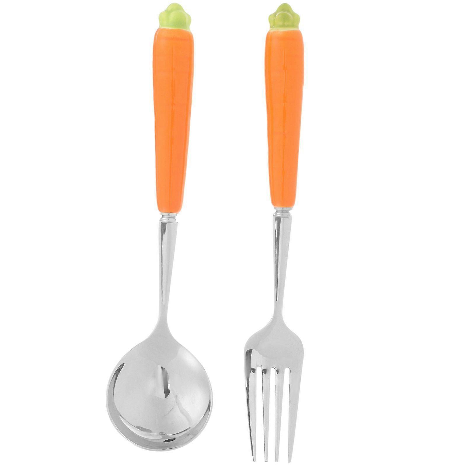 2pcs Baby Tableware Easter Fork Spoon Portable Cartoon Ceramic Carrot Decor Tableware