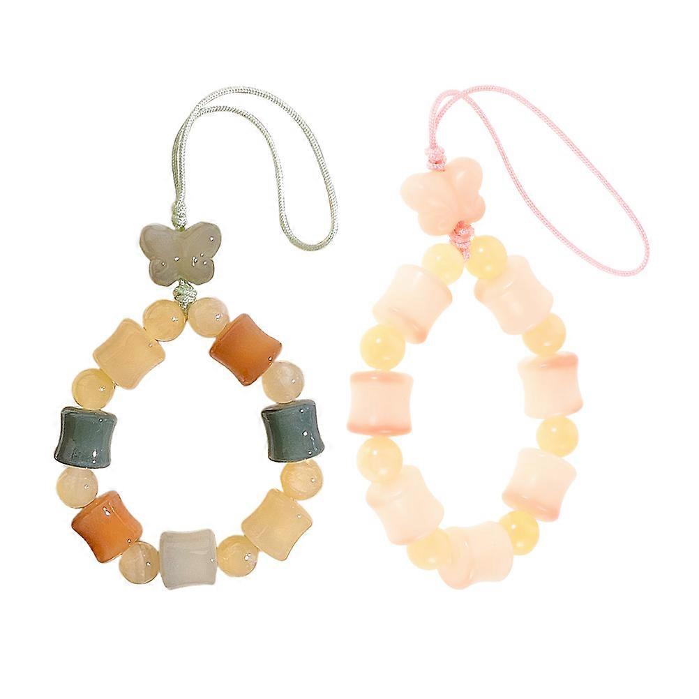 2Pcs Bodhi Beads Chain Mobile Phone Pendants For Daily Organization Rectangle Style Anti-Loss Secure Phone And Keys