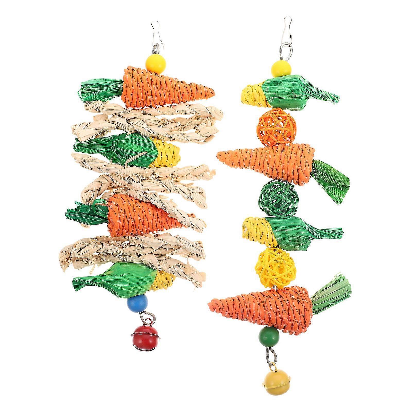 2Pcs Hamster Toys Rabbit Chew Toys Bunny Teething Playthings Guinea Pig Carrot Strings-FCY