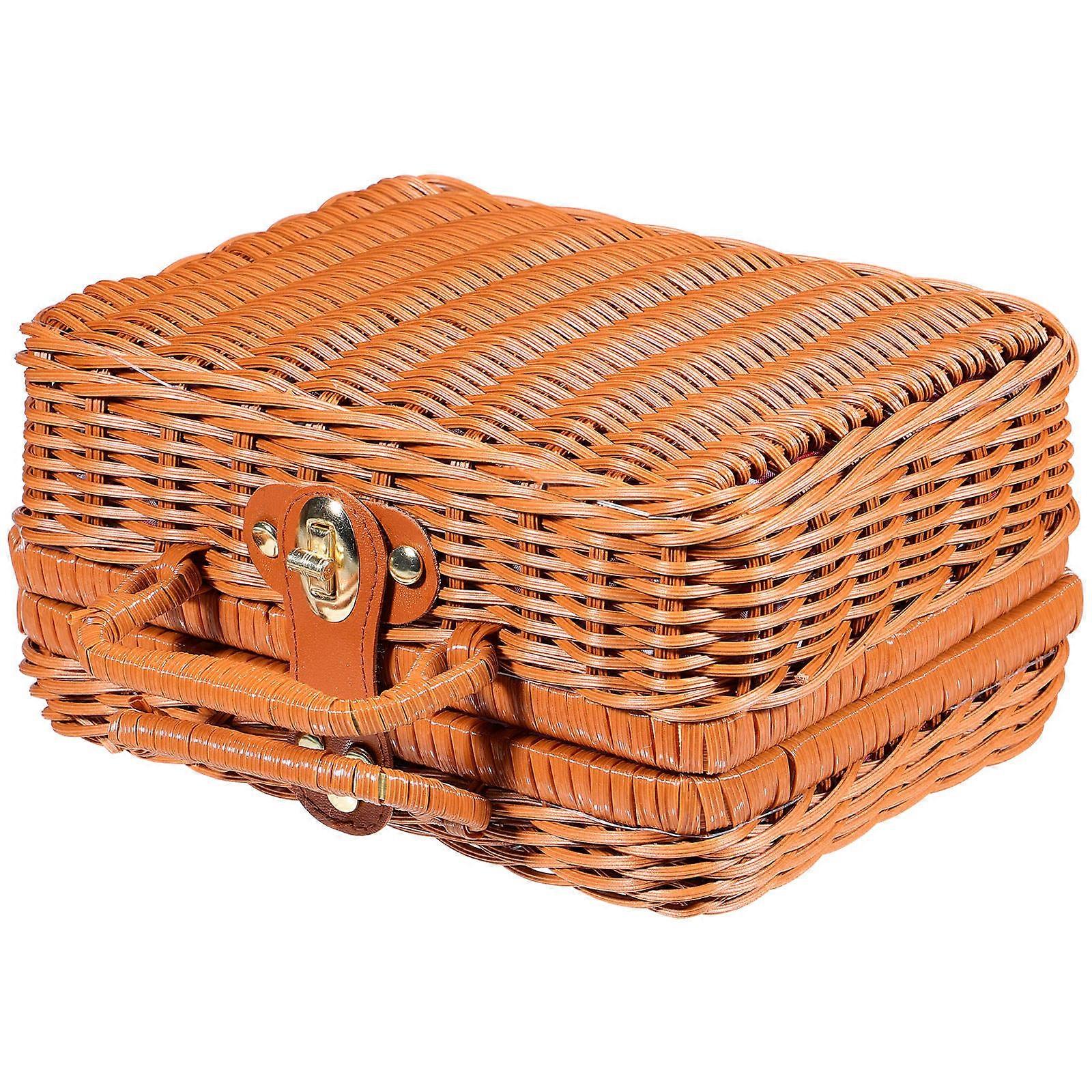 2Pcs Imikeya Retro Wicker Suitcase for Storage Use with Lining Brown