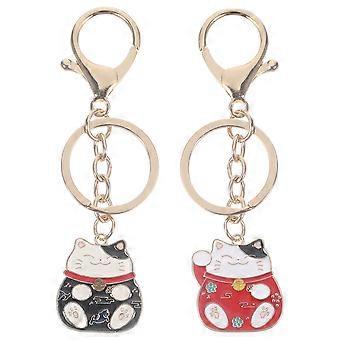 2pcs Japanese Style Cat Keychain with Fortune Cat Pendants, Lucky Raised Paw Design for Wealth and Good Fortune