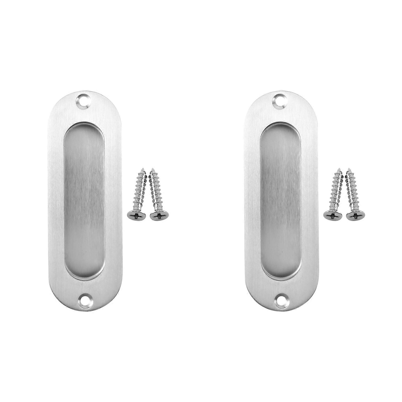 2Pcs Rectangular Face Fix Flush Recessed Sliding Door Pull Handle Stainless Steel