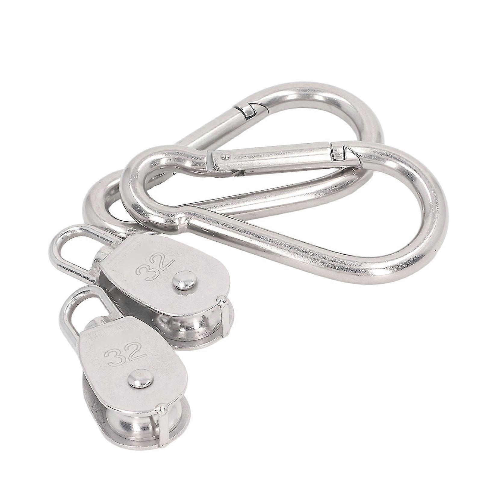 2Pcs Stainless Steel Wire Rope Hanging Towing Wheel Pulley with M32 Single Pulley Block and 2 M12 Spring Snap Hooks