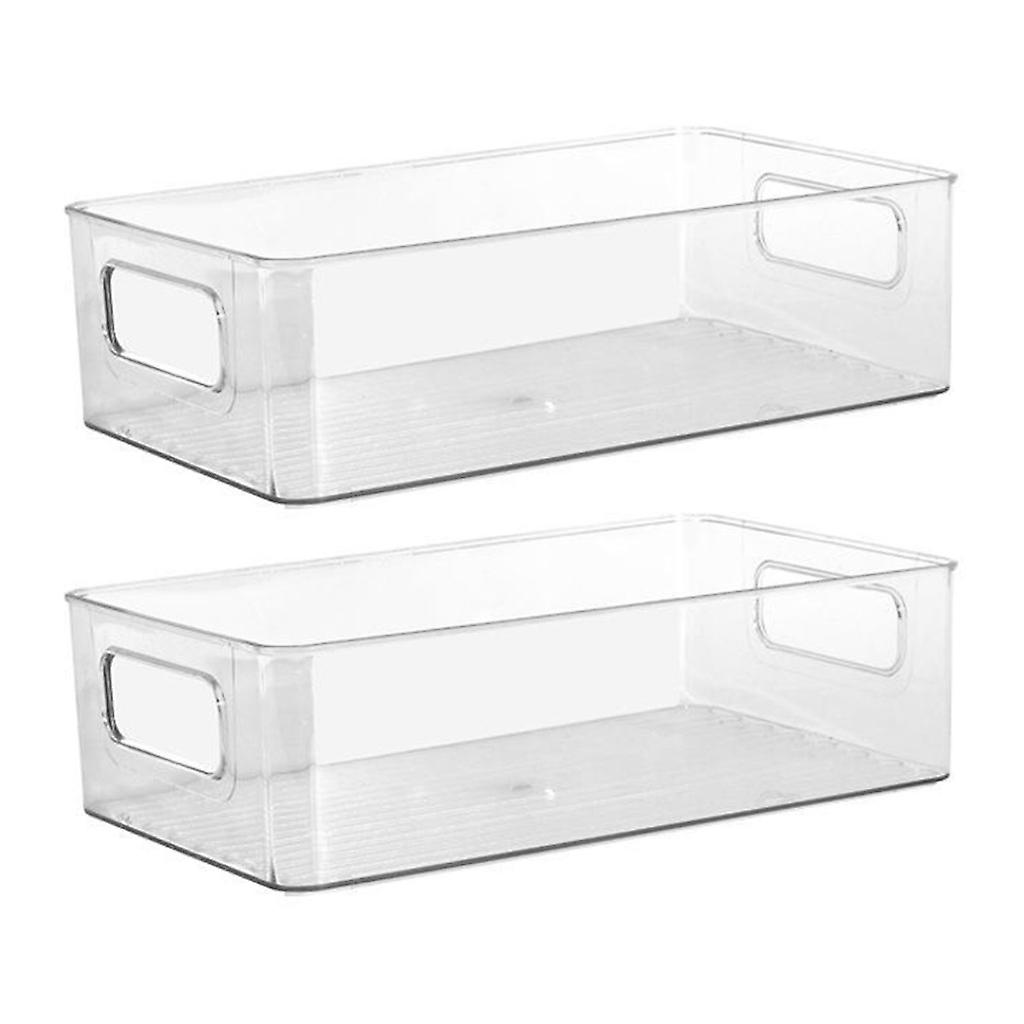 Features: 2 PCS Fridge Organizer Bins Set: Each refrigerator storage bin measures Approx.26x15x7.5cm/ 10.23x5.9x2.95inch.Use these clear fridge storage bins make your fridge organized and neat and-gain much more space. Clear bins with built-in and easy grip side handles make it easy to transport items; Getting things in the back of the frig a breeze. No more removing things one-by-one to get-to things in the back. These sturdy and medium capacity bins are great for creating a clean and organized refrigerator or pantry. Good for fruits, meat, milk, salad dressing, drink bottles, canned food, and packaged food ,condiments, jelly and more. So easy to keep clean and contain spills. You can easily find what you want with clear view. Significantly cuts-time from looking around,saving your-time.Keep items used on a daily organized. Centralized storage used in kitchen pantry, fridge or freezer, cabinets, shelves, counter tops, craft rooms, laundry, bathroom,bedrooms,offices and more. Specifications: Material: Acrylic Size: Approx.26x15x7.5cm/ 10.23x5.9x2.95" Note: Please allow 1-2cm errors due to manual measurement,Please make sure that you do not mind before you order. Due to the difference between different monitors, the picture may not reflect the actual color of the item. Package includes: 2 Pieces Pantry Storage Organizers