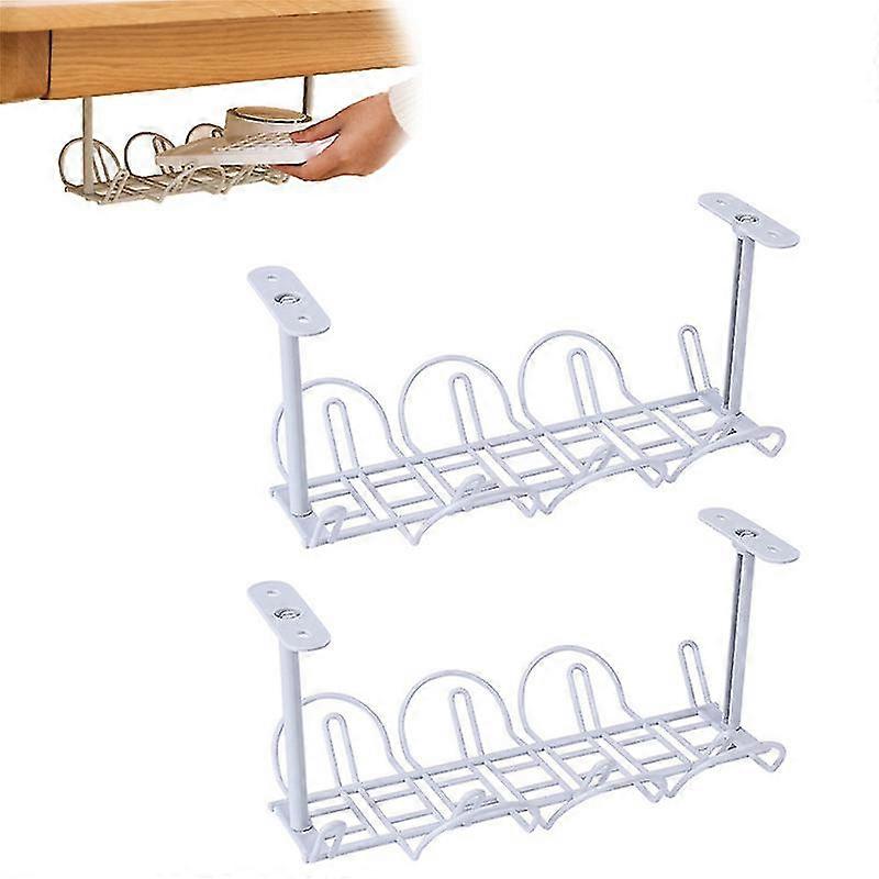 2pcs Under Table Storage Rack Cable Rack Shelf Table Bottom Socket Holder For Home Office Desk Wire Organizer(white)