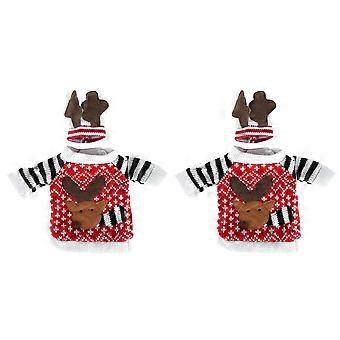 2pcs/set Cute Christmas Elk Wine Bottle Cover Champagne Bottle Knitting Sweater For Party Decorations