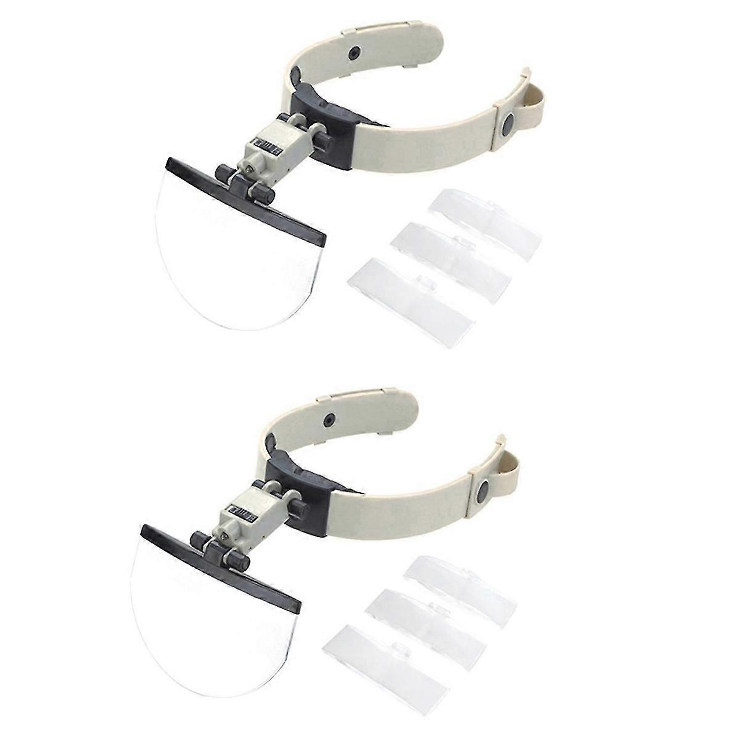 2Set Headband Magnifier Eye Glasses Magnifying with Led Lights Loupe Four Sets of Multiple Lens Head