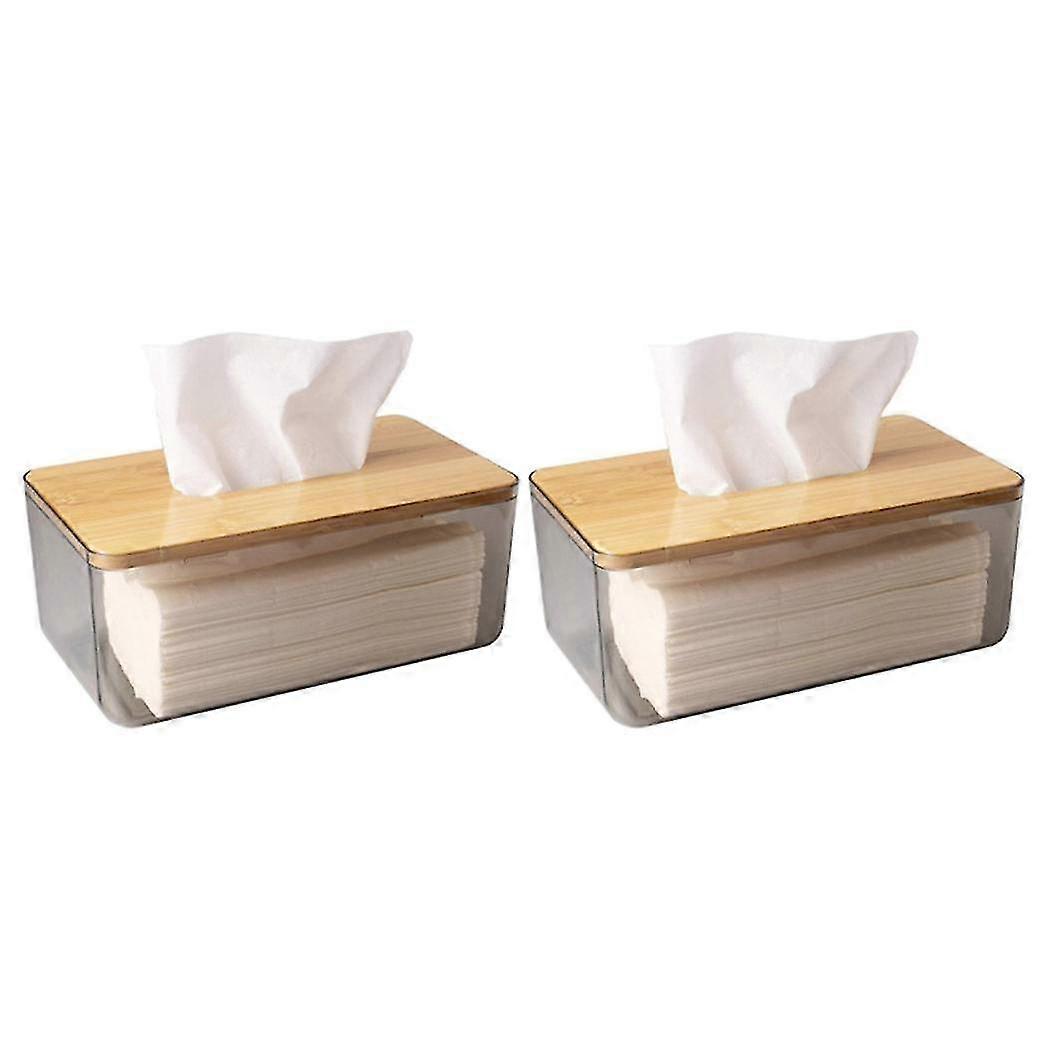 2x Minimalist Tissue Box Cover Holder, Modern Transparent Rectangular Bamboo Facial Tissues Dispens