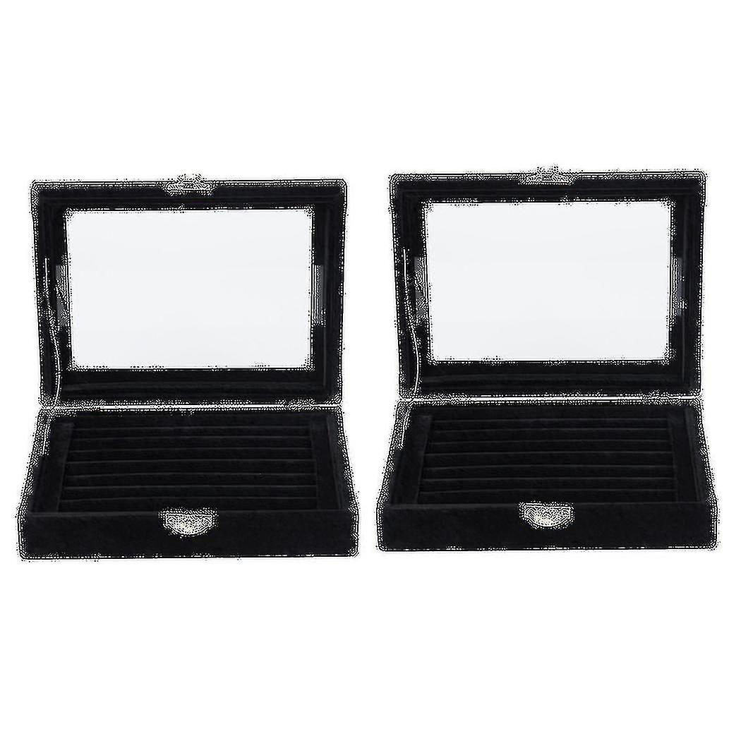 2x Velvet Glass Ring Earring Jewelry Display Organizer Box Tray Holder Storage Case, Black