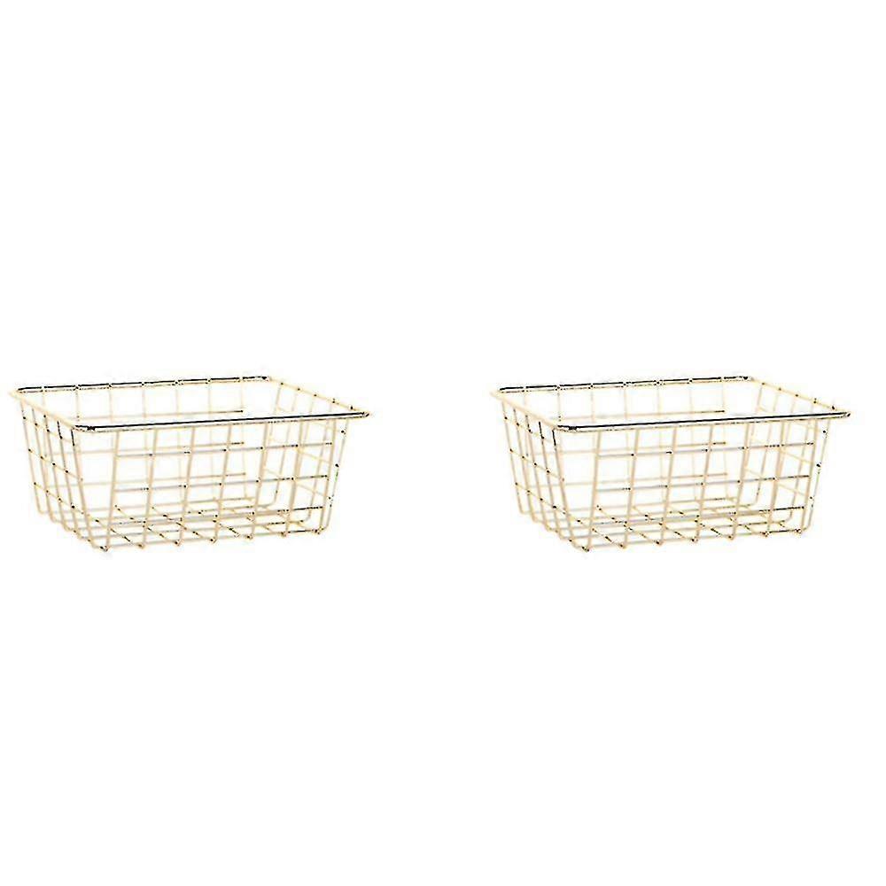 2x Storage Basket Solid Color Household Iron Basket Storage Box Bedroom Bathroom Gold S