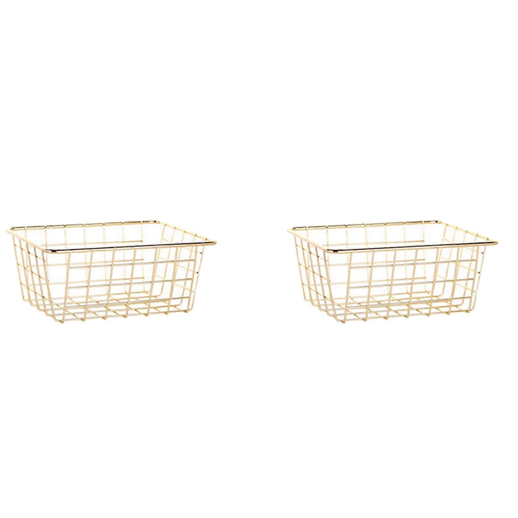 2x Storage Basket Solid Color Household Iron Basket Storage Box Bedroom Bathroom Gold S