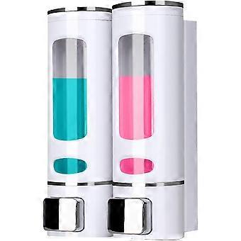2x 400ml, White Abs Wall-mounted Manual Soap Dispenser For Shampoo Or Hand Cleanser